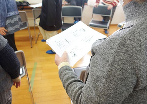 地域の方18名が参加され、「やりたいことをあきあらめない体づくり」をテーマに「転倒あるある・予防クイズ」をしながら楽しく体操を行いました。